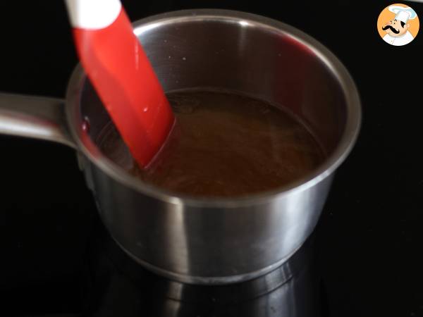 Kaada vesi, sokeri ja hunaja kattilaan keskilämmöllä. Sekoita kaikki keskenään lastalla ja anna siirapin paksuuntua noin 10-15 minuuttia.