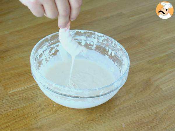 Kun taikina on jähmettynyt, upota jokainen katkarapu taikinaan ja kypsennä ne heti kastamisen jälkeen.