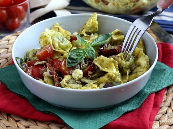 Olet tottunut syömään tortelliniä kuumana, mutta nyt voit nauttia sen myös kylmänä salaattina! Ja kyllä, mikä olisikaan parempaa kuin pastasalaatti, kun aurinko paistaa illalliselle? Tässä lisäät ruokaan väriä ja makua yhdistämällä tortellinit kirsikkatomaattien, mozzarellajuuston, aurinkokuivattujen tomaattien ja tuoreen basilikan kanssa. Herätimmekö ruokahalusi? Seuraa sitten alla olevan reseptimme ohjeita ↓